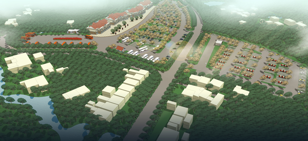 建筑設計主要采用簡歐風格,遵循“尊重自然、綠色生態(tài)、建筑風貌、景觀營造、可持續(xù)發(fā)展、低碳環(huán)保”的原則,布置在景區(qū)主干道右側(cè)和左側(cè)部分地塊,主要滿足大巴、中巴、小車、電瓶車以及回遷居民住宅。規(guī)劃區(qū)停車場設有四個車行主要出入口,其中兩個主要滿足停車場內(nèi)部車輛進出,一個滿足電瓶車出入停車場,一個滿足回遷建筑出入。建筑前廣場主要考慮人流集散,后庭院主要突出景觀營造,通過對商業(yè)零售、回遷居住、景區(qū)服務、汽車維修等配套商業(yè)設施的建設滿足游客游覽需求。