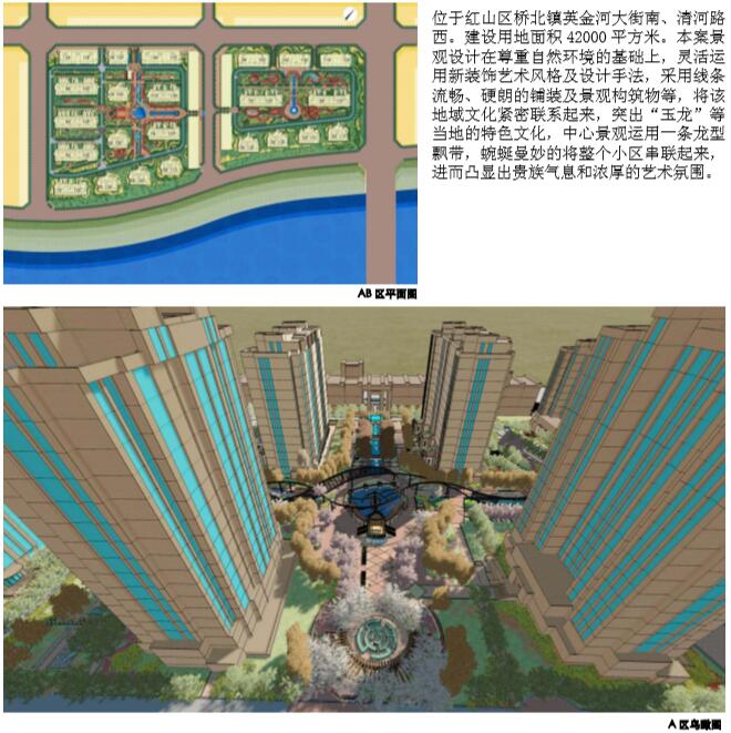 本項目位于紅山區(qū)橋北鎮(zhèn)英金河大街南、清河路西。建設(shè)用地面積42000平方米。本案景觀設(shè)計在尊重自然環(huán)境的基礎(chǔ)上,靈活運用新裝飾藝術(shù)風(fēng)格及設(shè)計手法,采用線條流暢、硬朗的鋪裝及景觀構(gòu)筑物等,將該地域文化緊密聯(lián)系起來,突出“玉龍”等當?shù)氐奶厣幕行木坝^運用一條龍型飄帶,蜿蜒曼妙的將整個小區(qū)串聯(lián)起來,進而凸顯出貴族氣息和濃厚的藝術(shù)氛圍。
