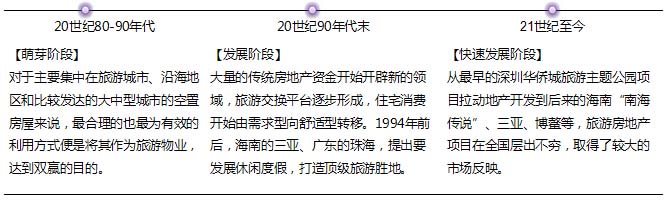 【國內(nèi)】旅游地產(chǎn)分別經(jīng)歷了萌芽階段、發(fā)展階段、和現(xiàn)今的快速發(fā)展階段